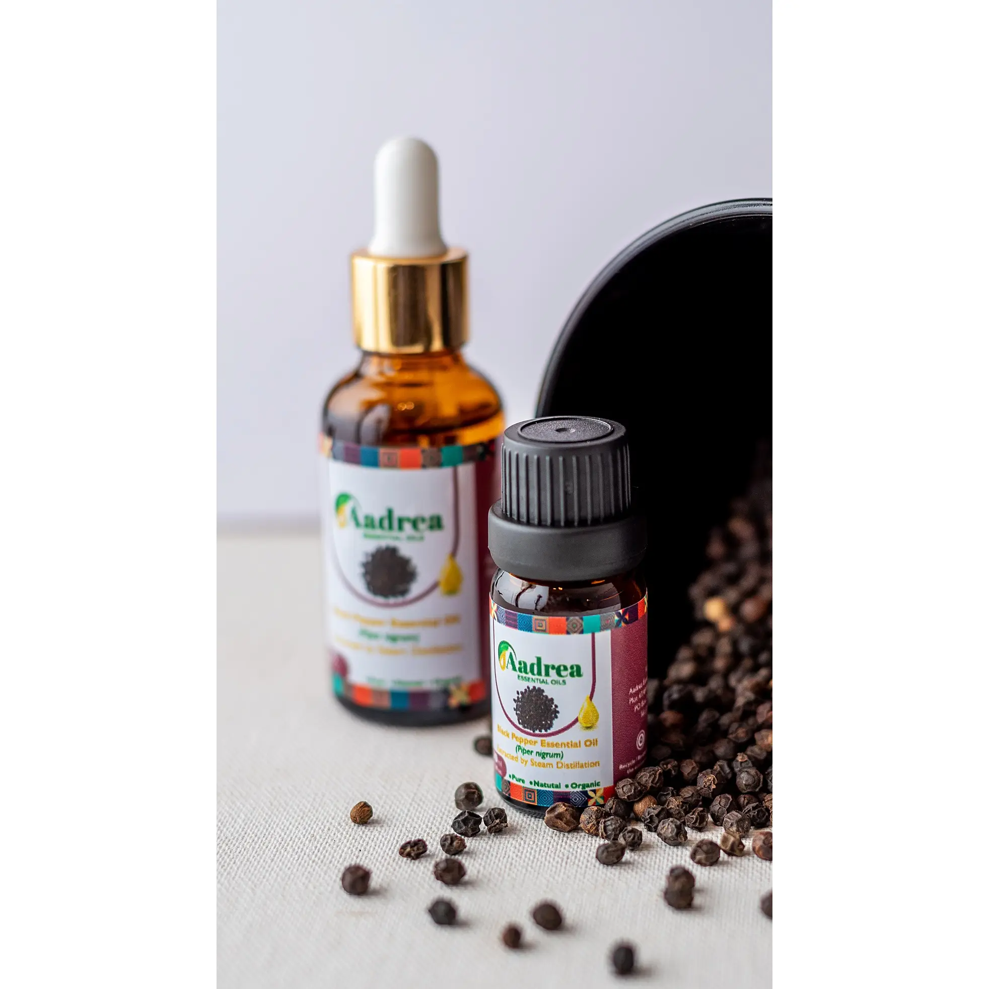 Black pepper essential oil is a spicy, warm, peppery and musky extract from Black pepper seed traditionally called the King of Spices. It is great for aromatherapy for muscle pain management, food preparations as a spice or condiment, and food preservation. The oil helps promote digestion, and promotes positive emotions.