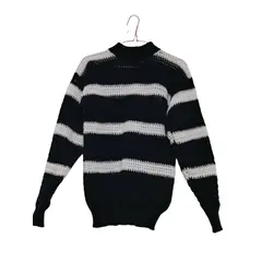 This cozy crochet sweater features bold horizontal black and white stripes, offering a classic and modern contrast. Made with a breathable stitch pattern, it’s designed with a high crew neckline, long sleeves, and ribbed cuffs and hem for a snug fit. Perfect for chilly days, this sweater...
