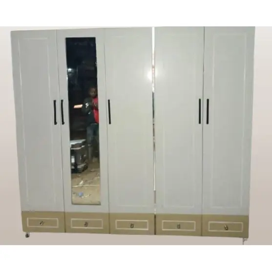Bring timeless elegance and functional storage into your bedroom with the EleganSpace 5-Door Mirror Wardrobe. With its sleek white and beige two-tone finish, full-length mirror panel, and multiple drawers, this wardrobe effortlessly combines beauty, utility, and convenience for the modern home.