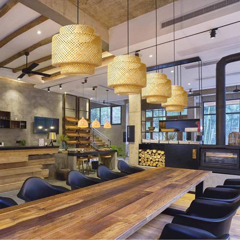 Hand-Woven Bamboo Pendant Lamp with Beige Lampshade | Modern Ceiling Light Fixture Byose ni Bambou lamp Rattan Hanging Lights