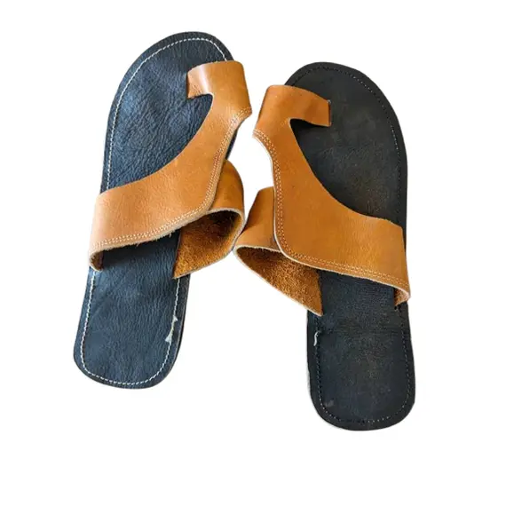 NOVA LEATHER Brown Comfortable Women's Toe Ring Sandals – Stylish Slip-On Leather Flats