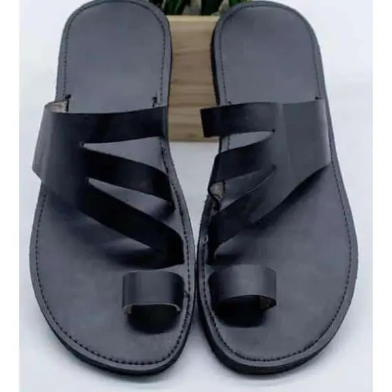 VIATO SAFI Black Toe Loop Sandals – Non-Slip Open Toe Casual Beach Flip Flops for Men