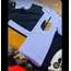 This is a neatly folded short-sleeve men's shirt with a modern, color-block design. The upper section is dark navy or black, while the lower part is a soft beige. It features white trimming along the collar and chest seam, giving it a clean and structured look. A standout feature is the front pocket, which is beige with a bold black and white geometric pattern that adds a unique and stylish flair to the overall design.