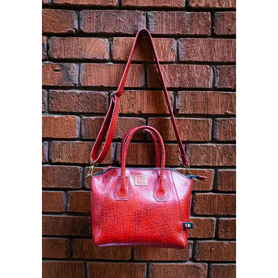 HB Dolly Mini- Red Pull-up leather Hand Bag – Handcrafted, Spacious, Permanent short strap, with detachable long adjustable Strap, Made in Kenya